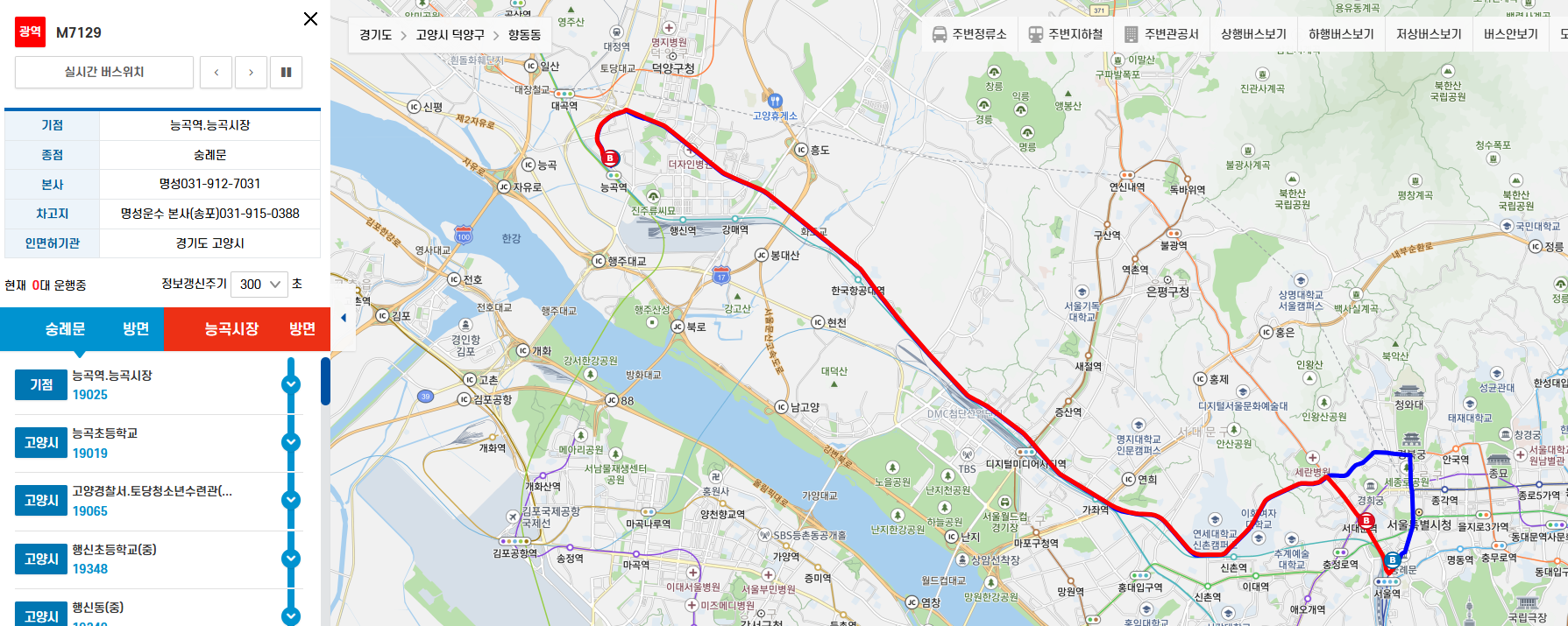가시고자 하는 곳의 버스를 선택하면 지도와 함께 버스의 경로가 빨갛게 표시됩니다