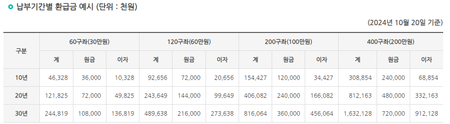 - 납부한도:1구좌(5천원)부터 400구좌(200만원)까지