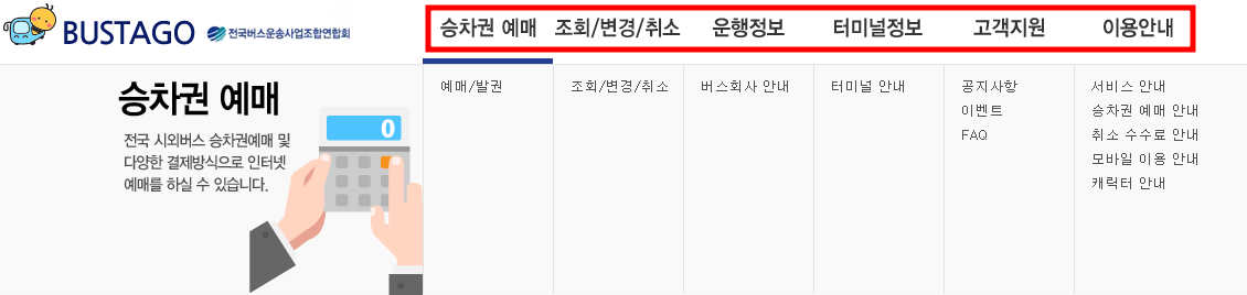 버스타고 홈페이지 이용방법