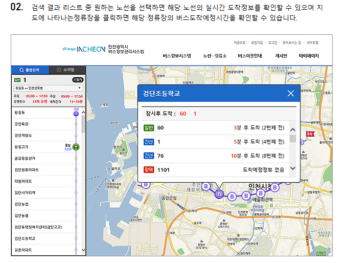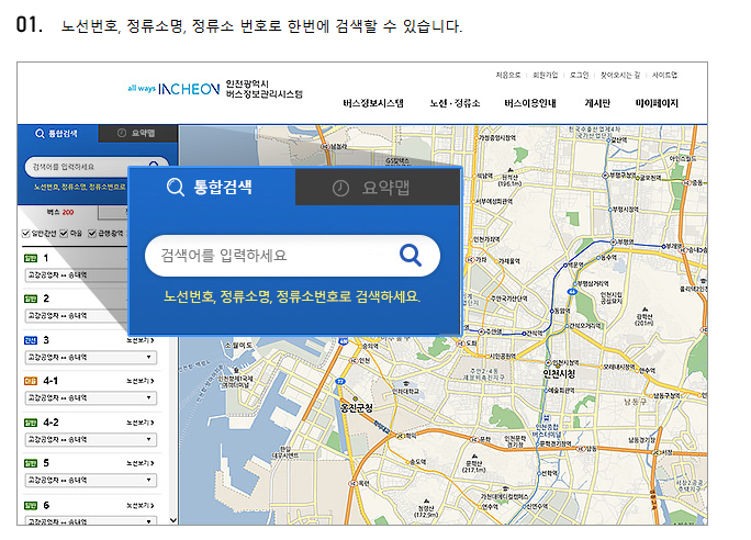 이 외에도 요약맵 기능을 통해 지도상에서 버스 노선과 정류장 위치를 시각적으로 확인할 수 있는 기능도 제공하고 있습니다. 이러한 다양한 기능들은 인천 시민들이 대중교통을 보다 효율적으로 이용하는 데 큰 도움이 됩니다.